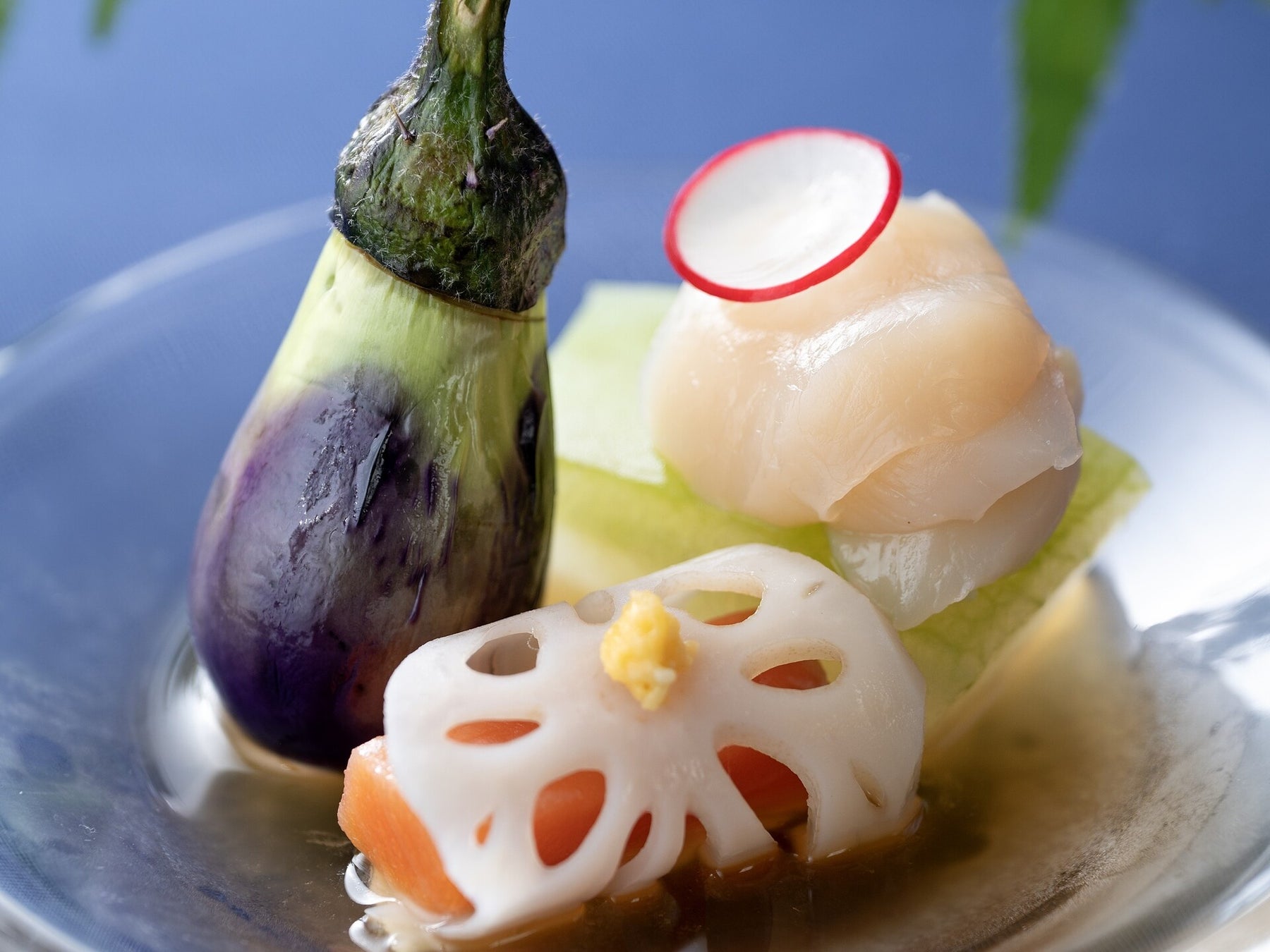 旨味が凝縮された身厚な夏真鱈や帆立貝など北海道産の食材を、京料理の技で丁寧に仕上げました。