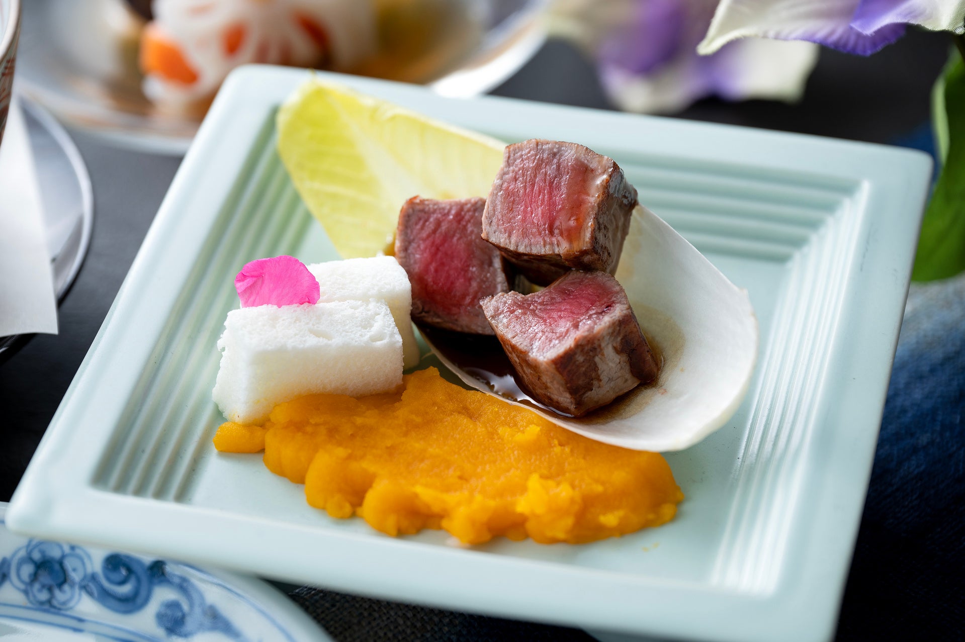 大沼黒牛フィレ肉 芥子醤油 南京ソース 白いカステラ