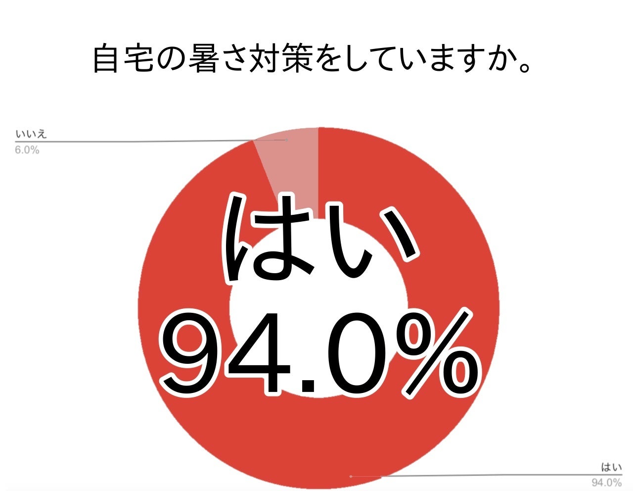 全国における回答では自宅の暑さ対策をしている方は9割超(94.0%)でした。