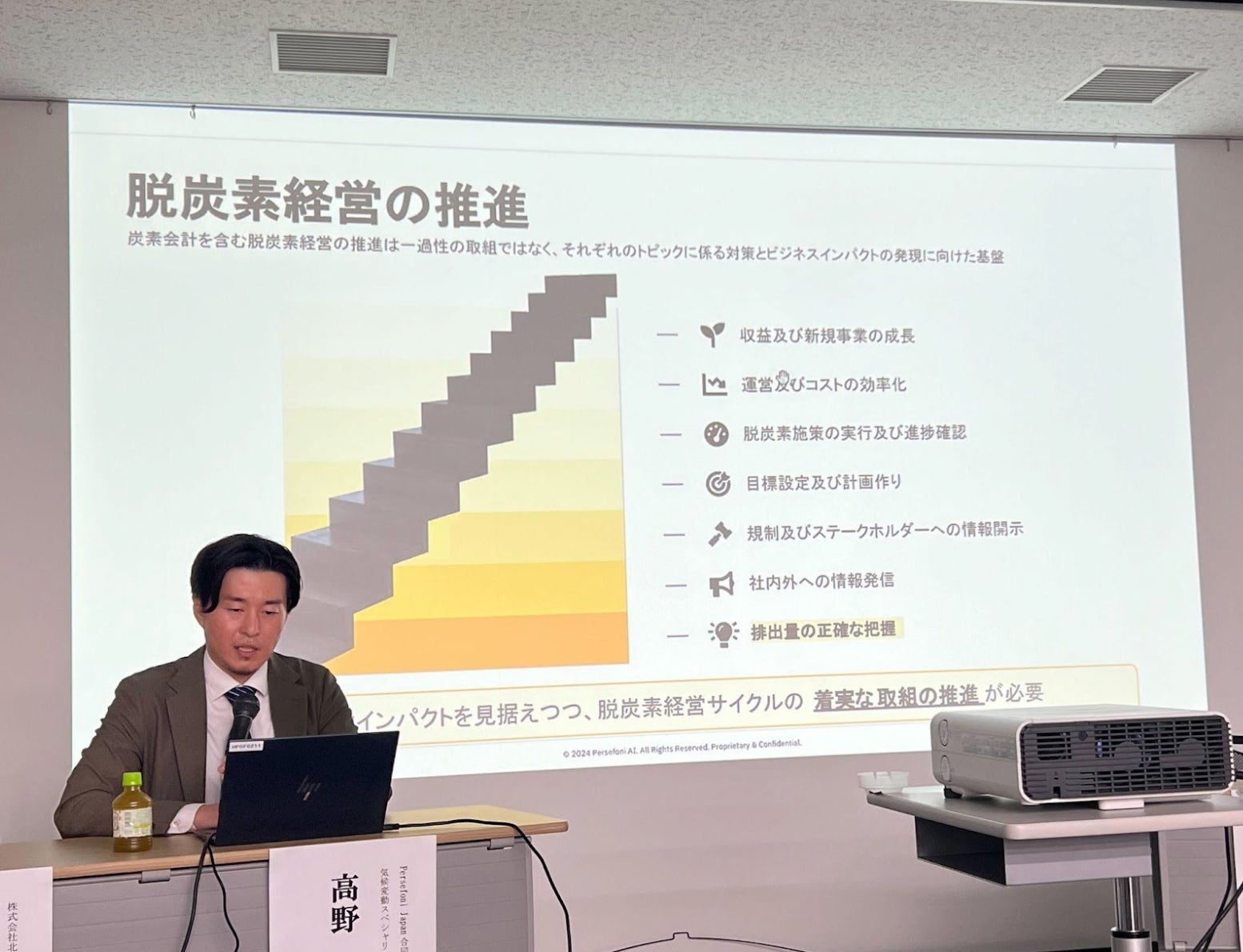 2025年6月13日-炭素会計のグローバルリーダーであるパーセフォニAI INC.(以下「パーセフォニ」)は、富山県が主催し、パーセフォニのユーザ企業であるほくほくフィナンシャルグループの北陸銀行様が事務局を務めた「脱炭素社会を生き残るためのGXセミナー」において、講師として登壇いたしました。