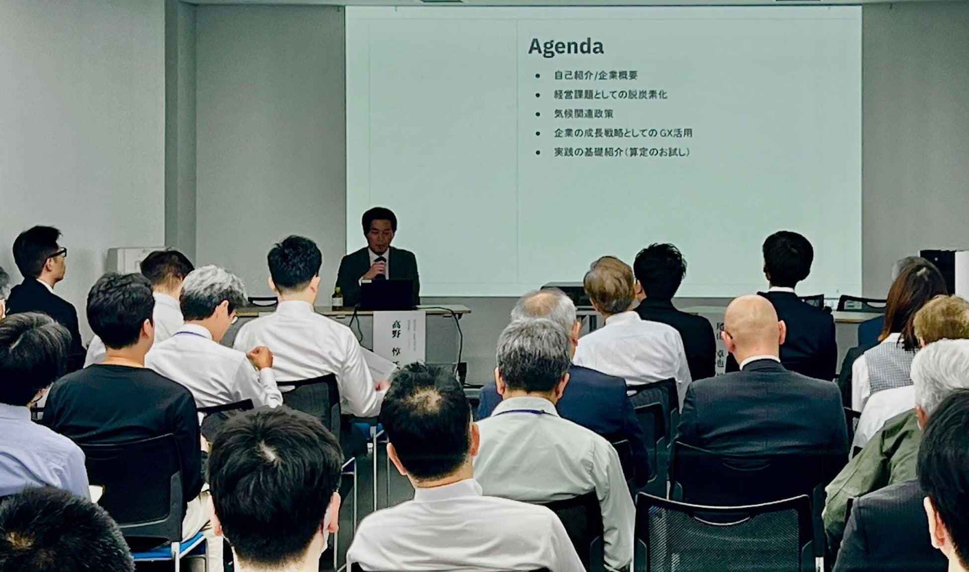 本セミナーは、カーボンニュートラルの実現に向けて、地域の企業や自治体が直面する課題や取り組むべき方向性を共有し、GX(グリーントランスフォーメーション)を推進するための実践的な知見を提供することを目的に開催されました。