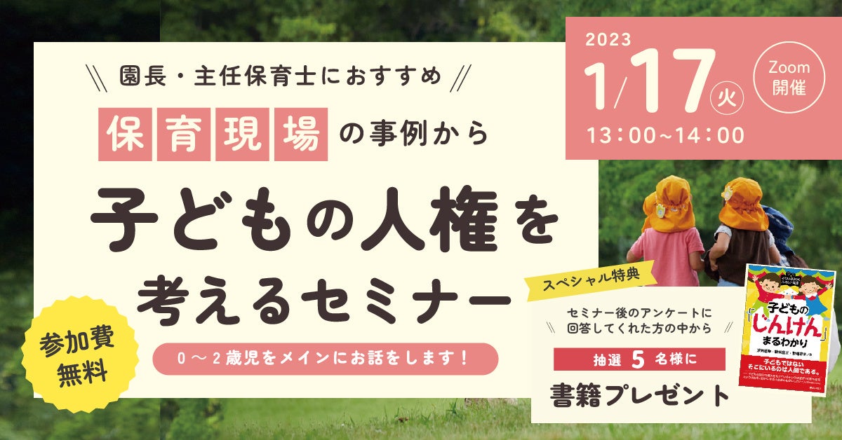 【1/17(火)13:00~14:00】無料オンラインセミナー「保育現場の事例から子どもの人権を考える」を開催