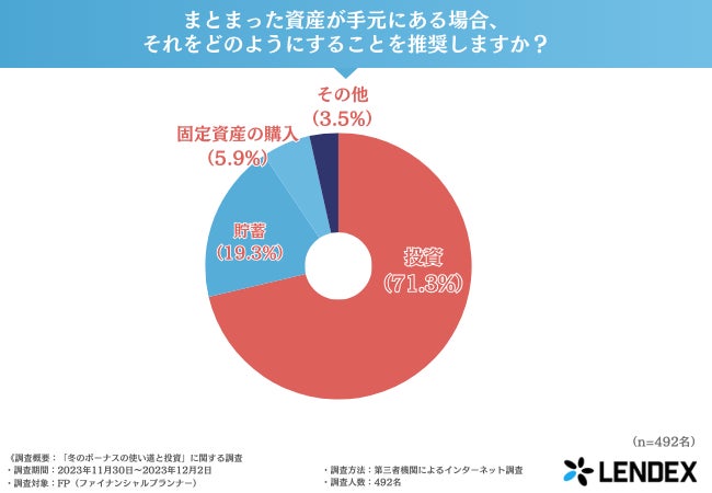 株式会社LENDEX(本社所在地:東京都渋谷区、代表取締役:中村 智)は、FP(ファイナンシャルプランナー)を対象に、「冬のボーナスの使い道と投資」に関する調査を実施しました。