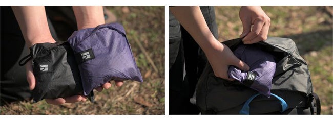 重さはわずか22g。バッグの内ポケットが、収納袋になるポケッタブル仕様で、アウトドアでも街でも軽量・コンパクトに持ち運びできます。