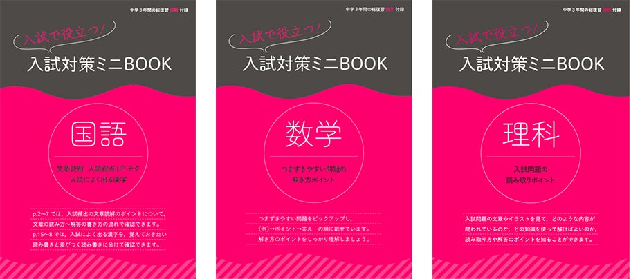 - 振り返り→問題演習→高校入試実戦テストの3段階構成