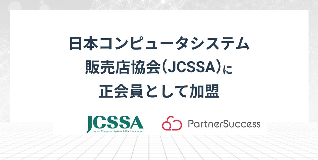 代理店販売で業績を伸ばすPRM(※1)-代理店連携管理クラウド「PartnerSuccess」を開発運営するパートナーサクセス株式会社(本社:東京都渋谷区、代表取締役 永田雅裕、以下「パートナーサクセス」)は、一般社団法人日本コンピュータシステム販売店協会(以下、JCSSA)への正会員入会を発表いたします。