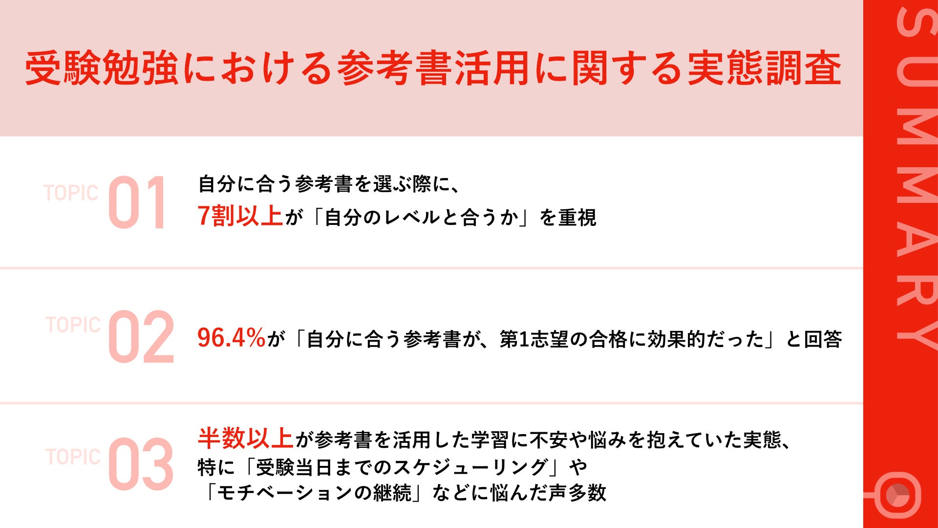 - 96.4%が自分に合う参考書が、第1志望の合格に効果的であったと回答