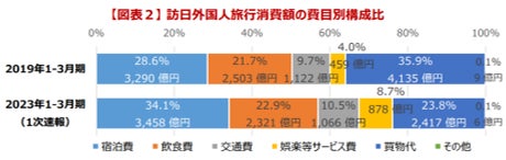 観光庁が発表した「訪日外国人旅行消費動向調査結果(1次速報)」によると、日本旅行での支出の中で飲食費は、宿泊費、買い物代に次いで3位と高い割合を示しています。(引用:訪日外国人消費動向調査2023年1-3月期の全国調査結果(1次速報)概要https://www.mlit.go.jp/kankocho/content/001602887.pdf)
