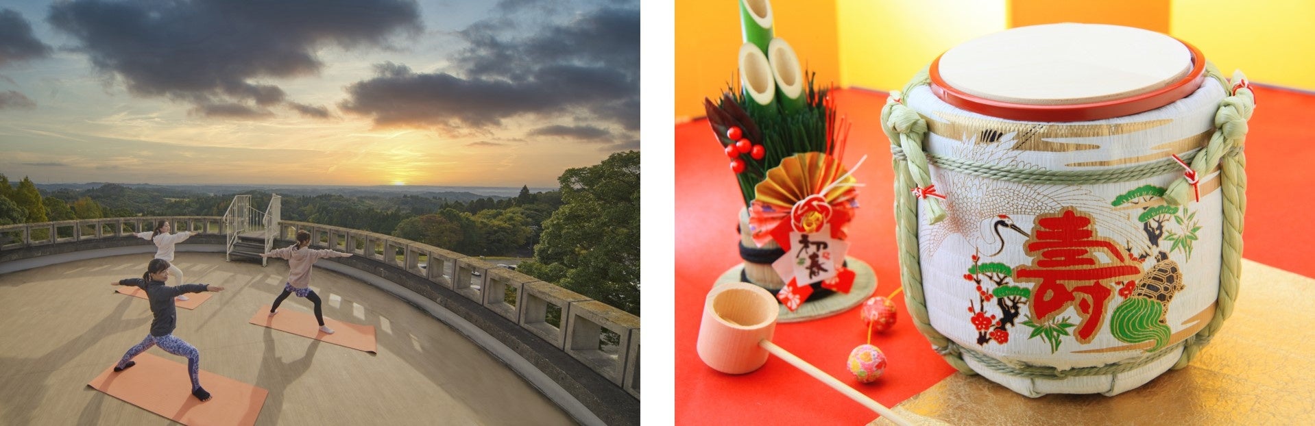 リソルの森のゴルフ場にある天空テラスで、初日の出とともにサンライズヨガを行います。澄み切った空気の中で元旦の朝日を浴びながら心と身体を整えて、最高の一年のスタートにしていただけます。