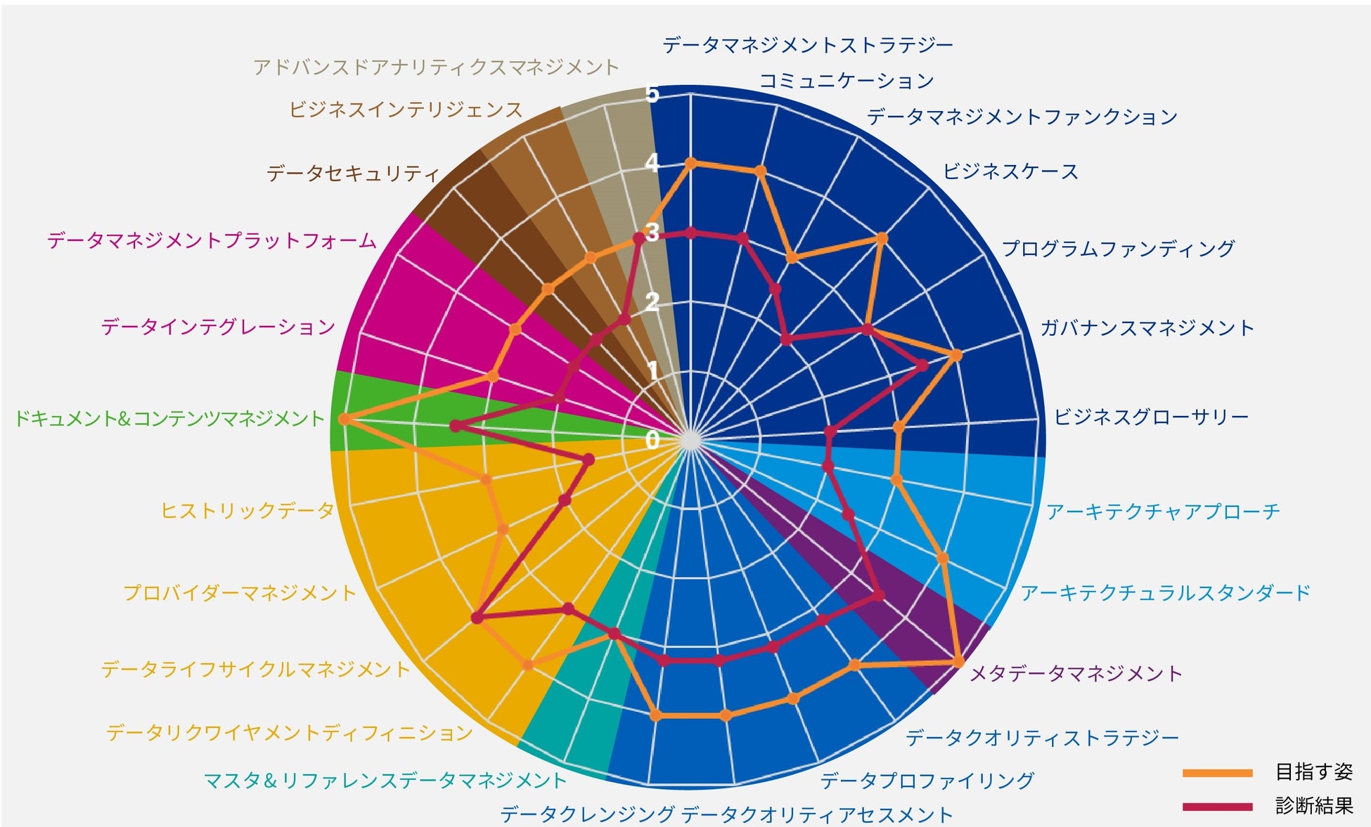 【データマネジメント成熟度診断の診断結果イメージ】
