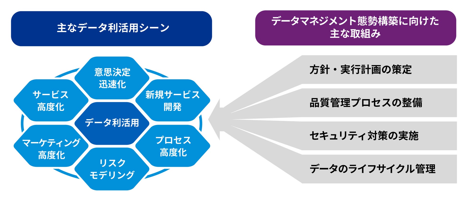 昨今、企業におけるデータの利活用は、経営の意思決定から新規サービスの開発、オペレーションの効率化、リスクモデリングなど、事業活動のさまざまなシーンに拡大しています。データの価値が高まるなか、データによる効果を最大化しながら、安心・安全、かつ永続的に活用し続けるためには、データのライフサイクルまでを管理するデータマネジメント態勢の構築が不可欠です。