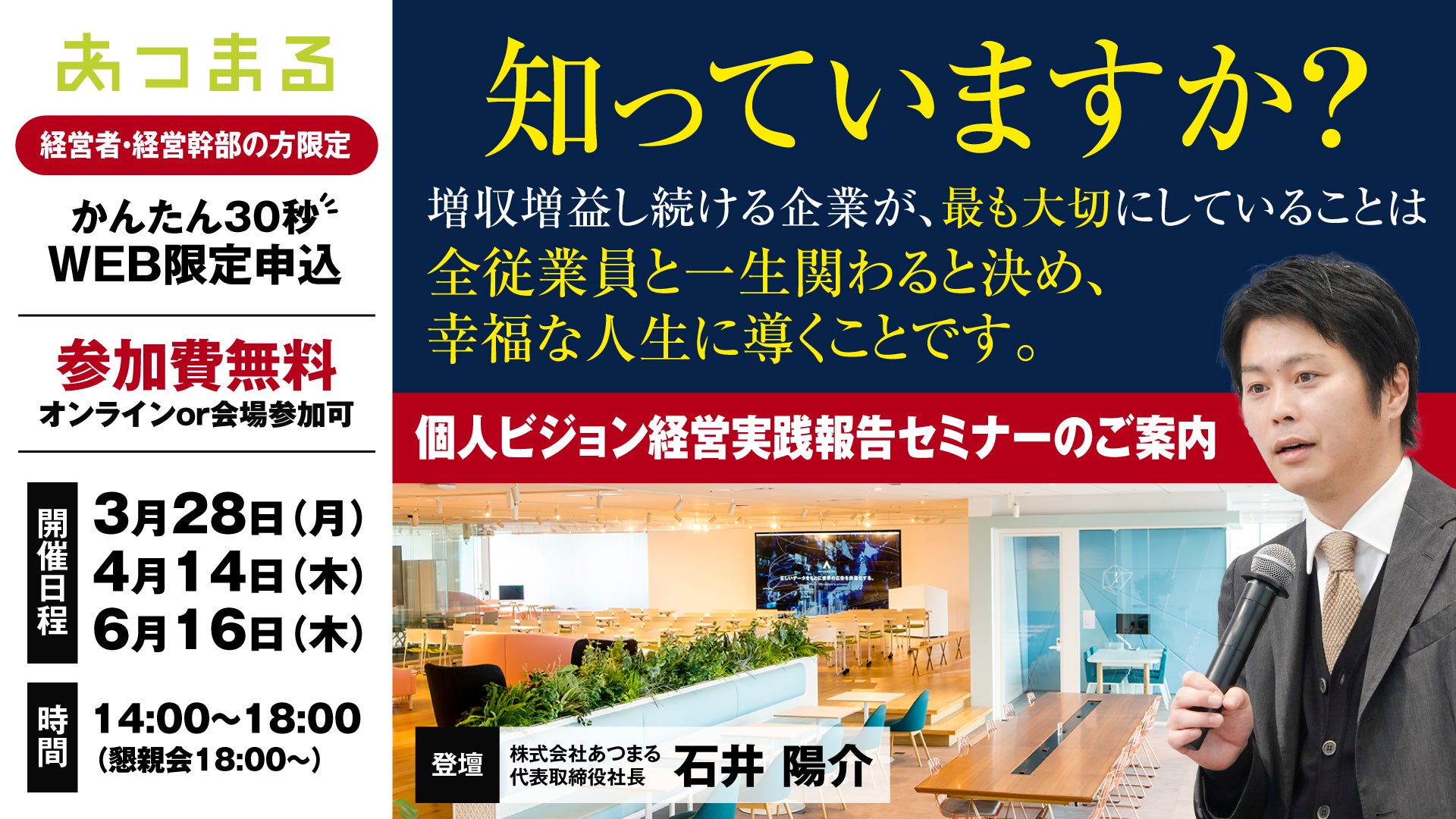 個人ビジョン経営実践報告セミナーのご案内/株式会社あつまる