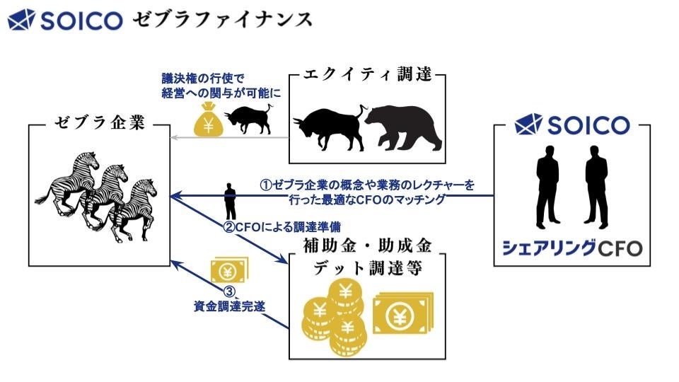 資本政策のコンサルティングに特化したSOICO株式会社(本社:東京都港区、代表取締役:茅原淳一、以下「SOICO」)は、「ゼブラ企業」支援のために企業の成長を後押しするための資金調達支援として新サービス「ゼブラファイナンス」の提供を4月から開始します。