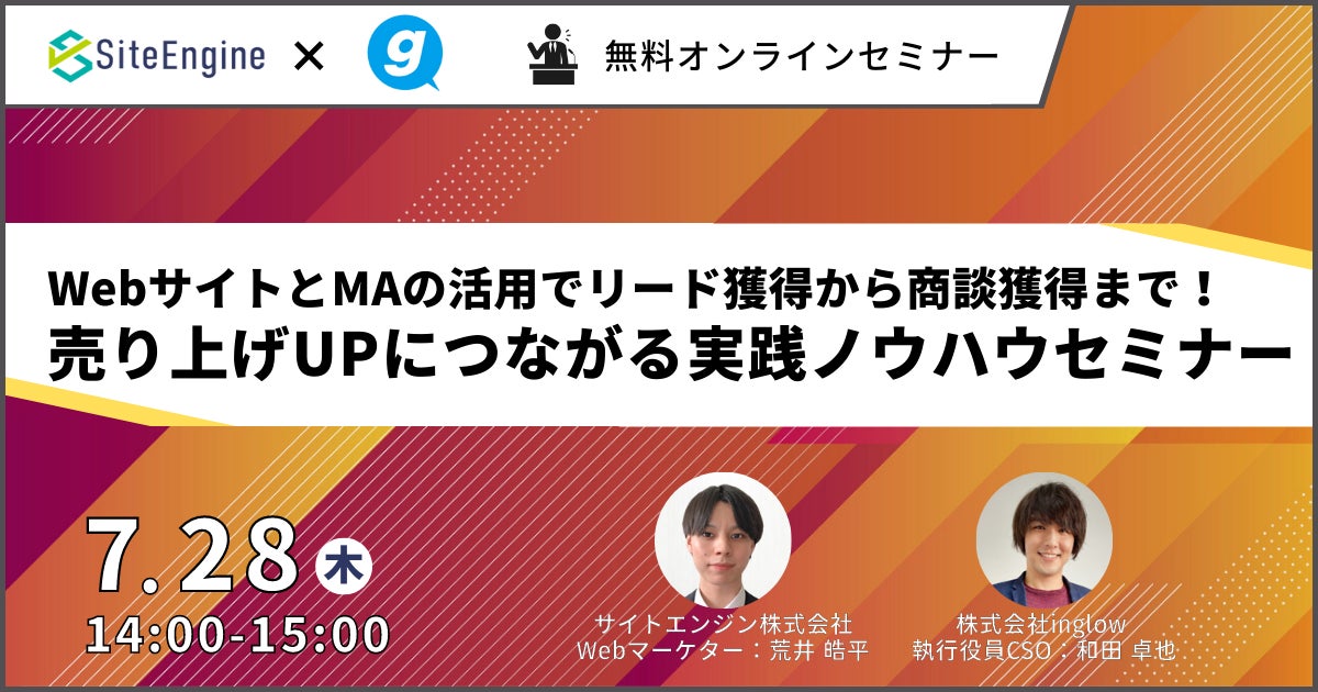 サイトエンジン株式会社 7月28日に株式会社inglowとの共催オンラインセミナー ” WebサイトとMAの活用でリード獲得から商談獲得まで!売り上げUPにつながる実践ノウハウセミナー”を開催