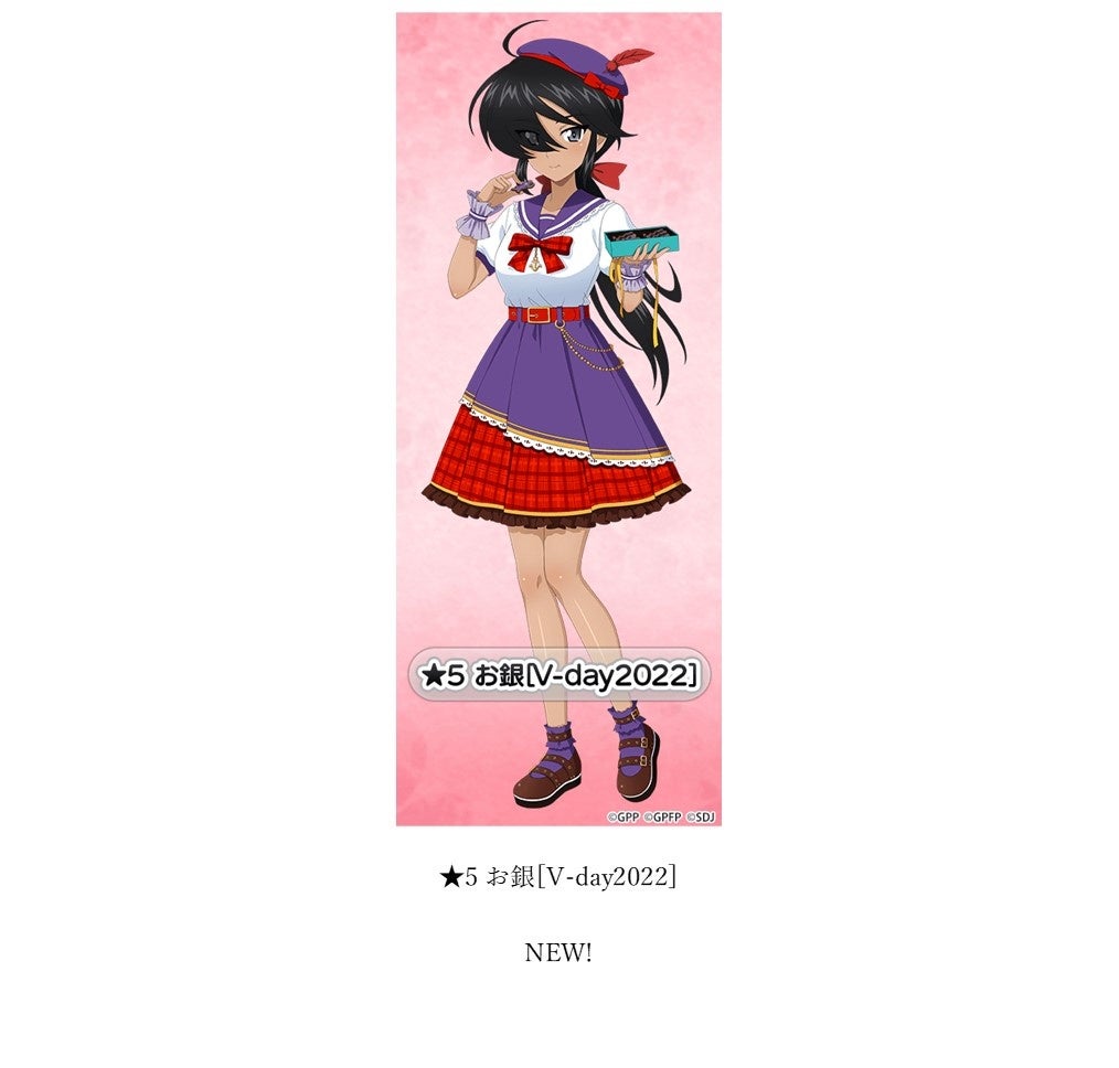 2月1日(火)15時から開始する2月前半大演習イベントには、★5お銀[V-day2022]が新規生徒として登場いたします。