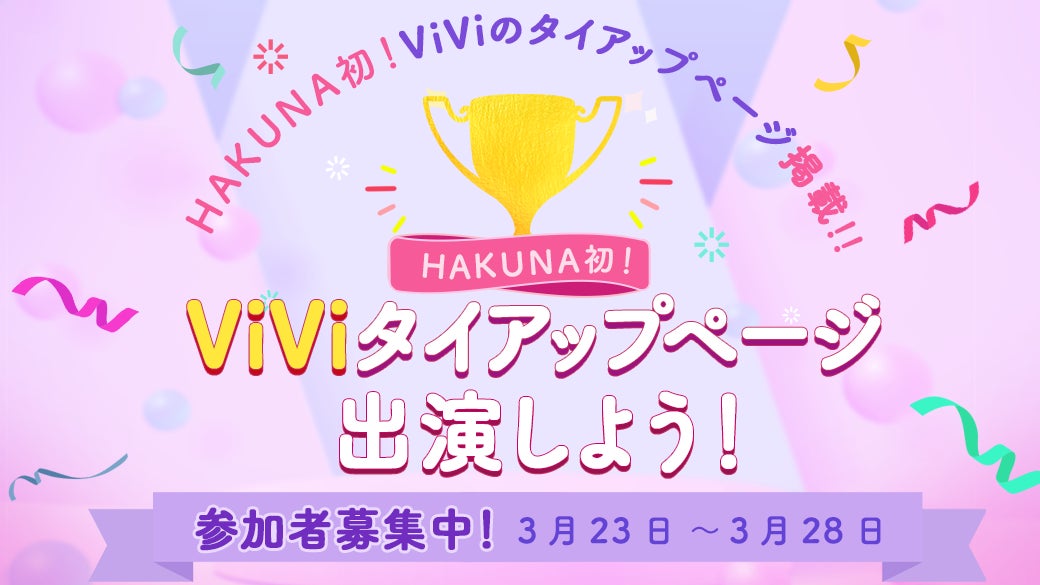 「HAKUNA Live」3/23よりHAKUNA Live初の「ViViタイアップページ出演しよう」イベントを実施!