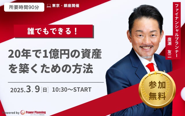3月9日(日)10時より人気講師、廣瀬友二氏による「誰でもできる!20年で1億円の資産を築くための方法を大公開!」セミナーを開催いたします。