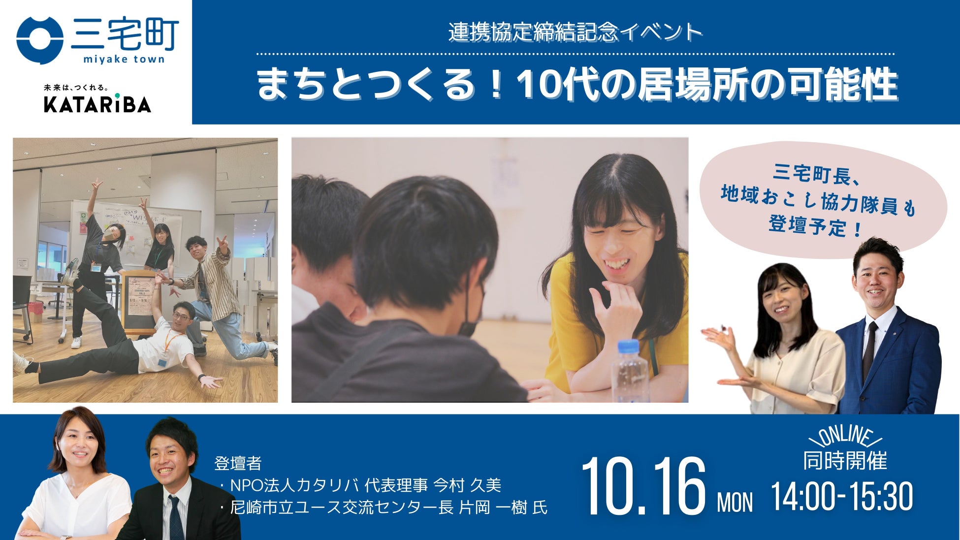認定特定非営利活動法人カタリバ(本部:東京都杉並区、代表理事:今村久美、以下カタリバ)が運営する「ユースセンター起業塾」は、奈良県三宅町と連携し三宅町に新しくオープンする10代の居場所づくりを支援します。連携を記念し、10月16日(月)に代表理事今村も登壇するトークイベントを開催することになりましたのでお知らせします。