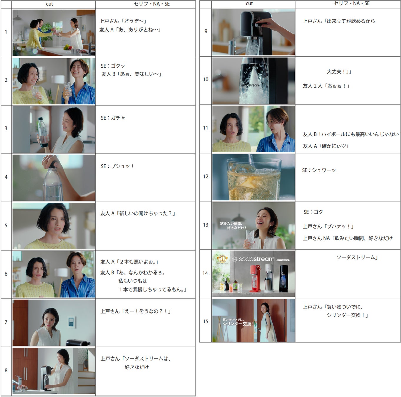 CMストーリーボード「飲みたい瞬間、好きなだけ炭酸水」篇 15秒
