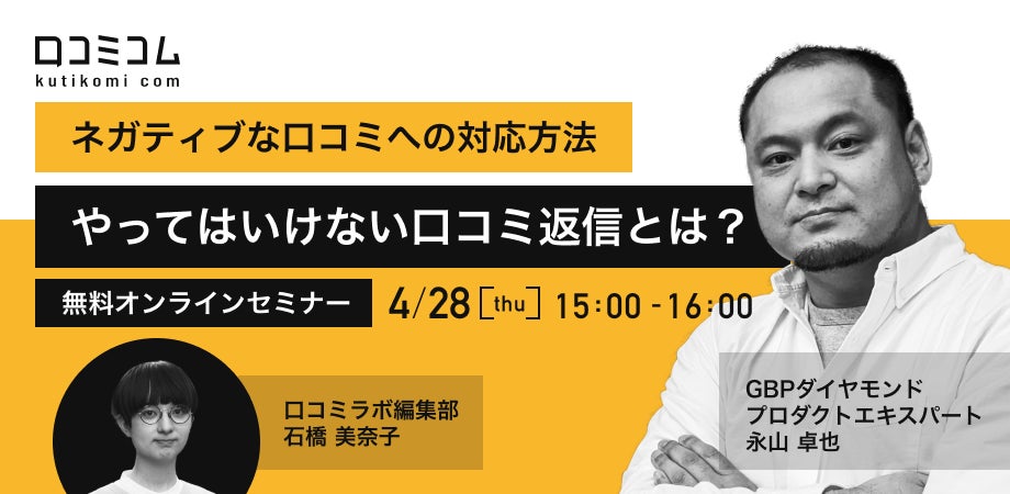 「やってはいけない口コミ返信」とは?ネガティブな口コミへの対応方法セミナーを口コミコムが開催【4/28(木)オンライン】