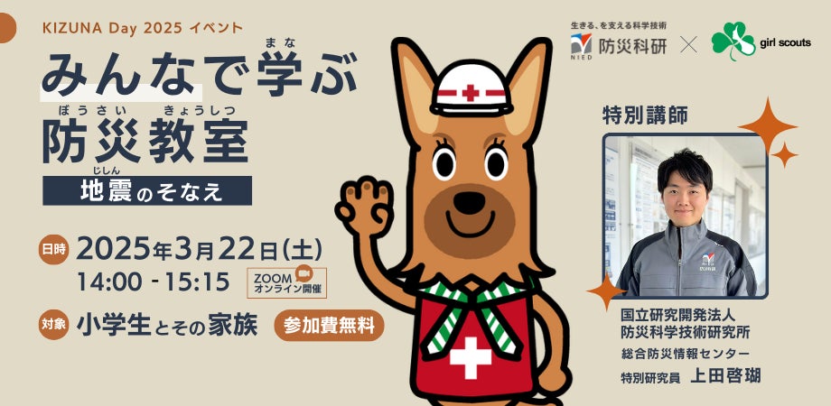 公益社団法人ガールスカウト日本連盟(会長:間奈々恵、以下ガールスカウト日本連盟)は、国立研究開発法人防災科学技術研究所との共催で、3月22日(土)に小学生とその家族を対象としたオンライン防災教室「地震のそなえ」を開催いたします。