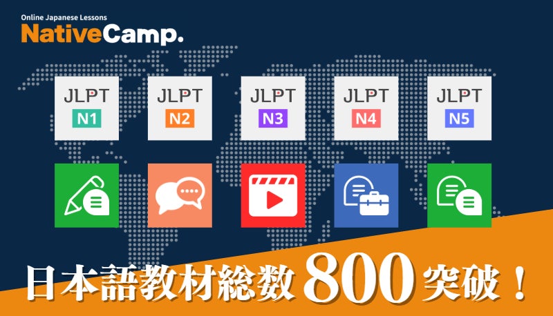 株式会社ネイティブキャンプ(本社:東京都渋谷区、代表取締役社長:谷川国洋)が提供するオンライン日本語会話サービス『Native Camp Japanese』は、このたび、日本語学習教材の総数が800を超えましたことをお知らせいたします。