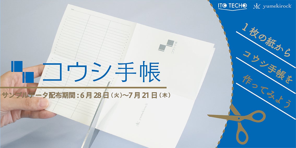 手帳製造・OEMを手がけて68年の伊藤手帳株式会社(本社名古屋市:代表取締役社長 伊藤 亮仁 以下当社)は、2022年6月28日(火)から7月21日(木)まで「猛暑のおうち時間を工作で楽しむ企画」として当社自社ブランドユメキロック製品コウシ手帳のPDFサンプルデータ(以下本データ)を期間限定で無料提供します。提供場所は当社ECサイトユメキロック直営店となります。