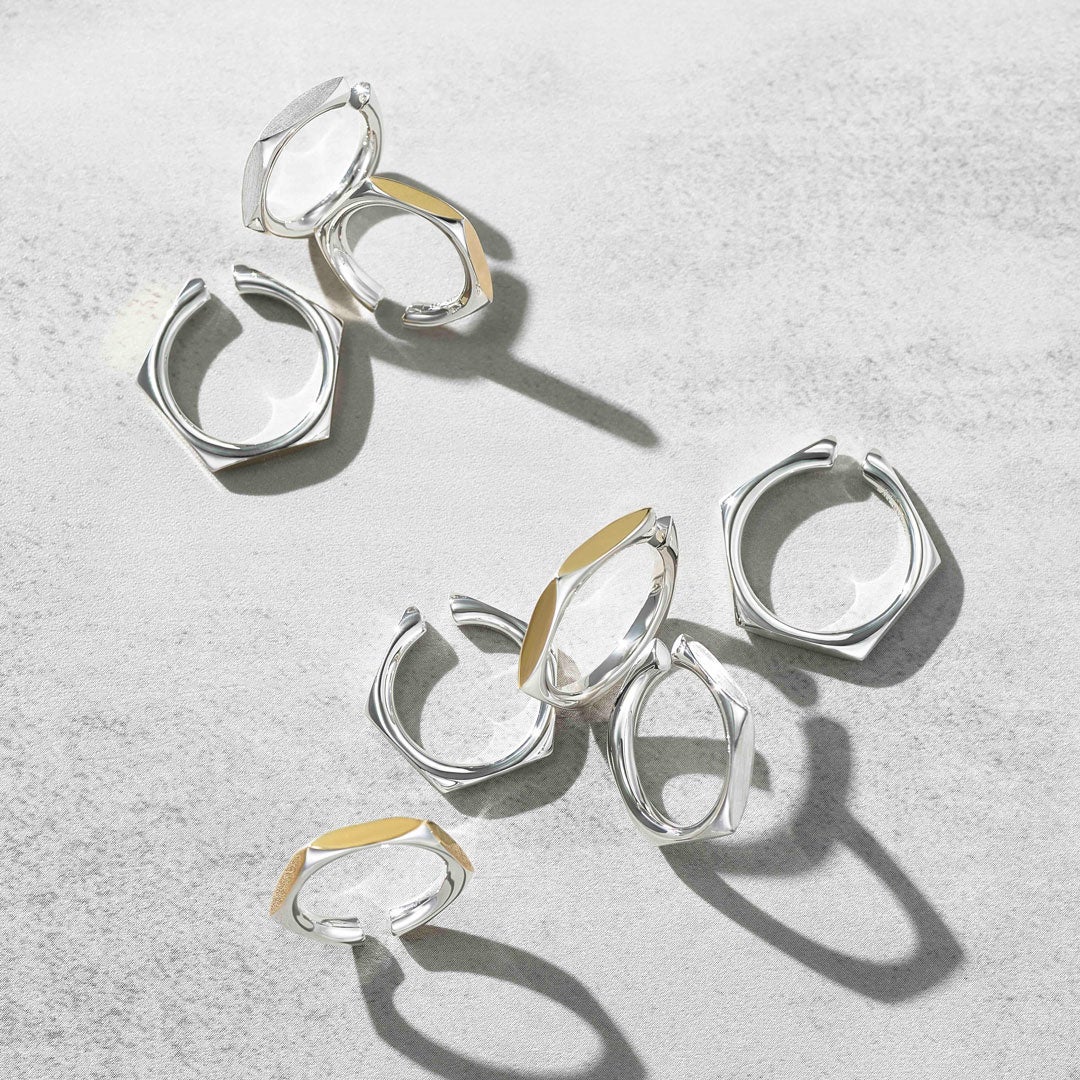 リングとしても使えるジェンダーフリーなアイテムは、耳につけても指につけてもシャープな印象で スタイリングにスパイスをプラスします。