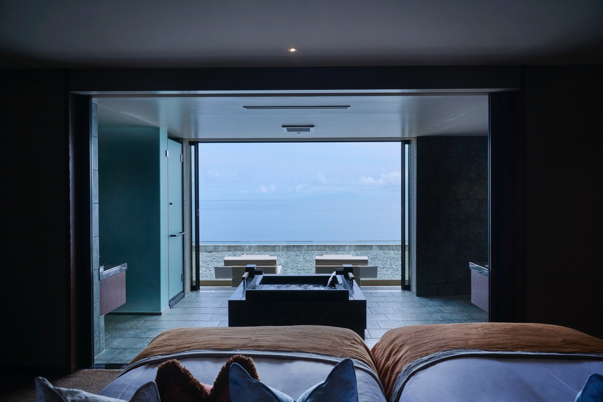 「THE HIRAMATSU HOTELS & RESORTS 熱海」は、各地にレストランやホテルを展開するひらまつがお届けする「滞在するレストラン」。かつて文豪や偉人たちに愛された熱海、その歴史を象徴するかのような名工の手による数寄屋造りの邸宅を受け継いでいます。趣ある玄関に迎えられ、和と洋の美が織りなす佇まいを抜けた先には美しい相模湾が広がります。「泊まる」だけでなく、「食」に格別のこだわりをもつ旅のデスティネーションとなるこの宿で、山海の豊かな恵みを堪能しつつ悠々とした時をお過ごしください。
