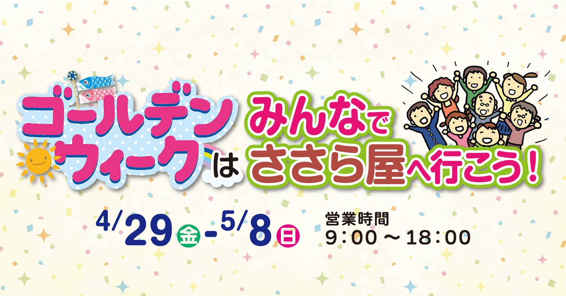 4/29(金・祝)~5/8(日)ゴールデンウイークはみんなでささら屋へ行こう!