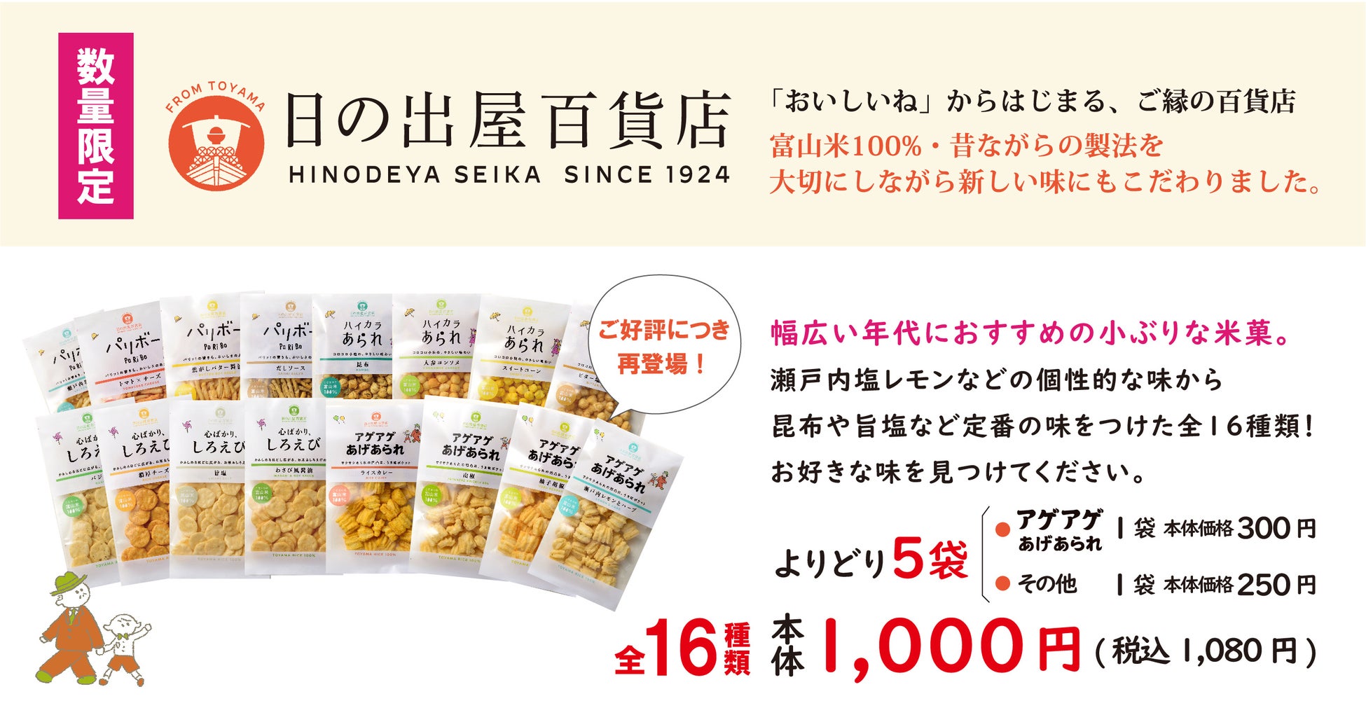 ※ささら屋公式オンラインショップでは、送料無料の「日の出屋百貨店セット」も購入できます。