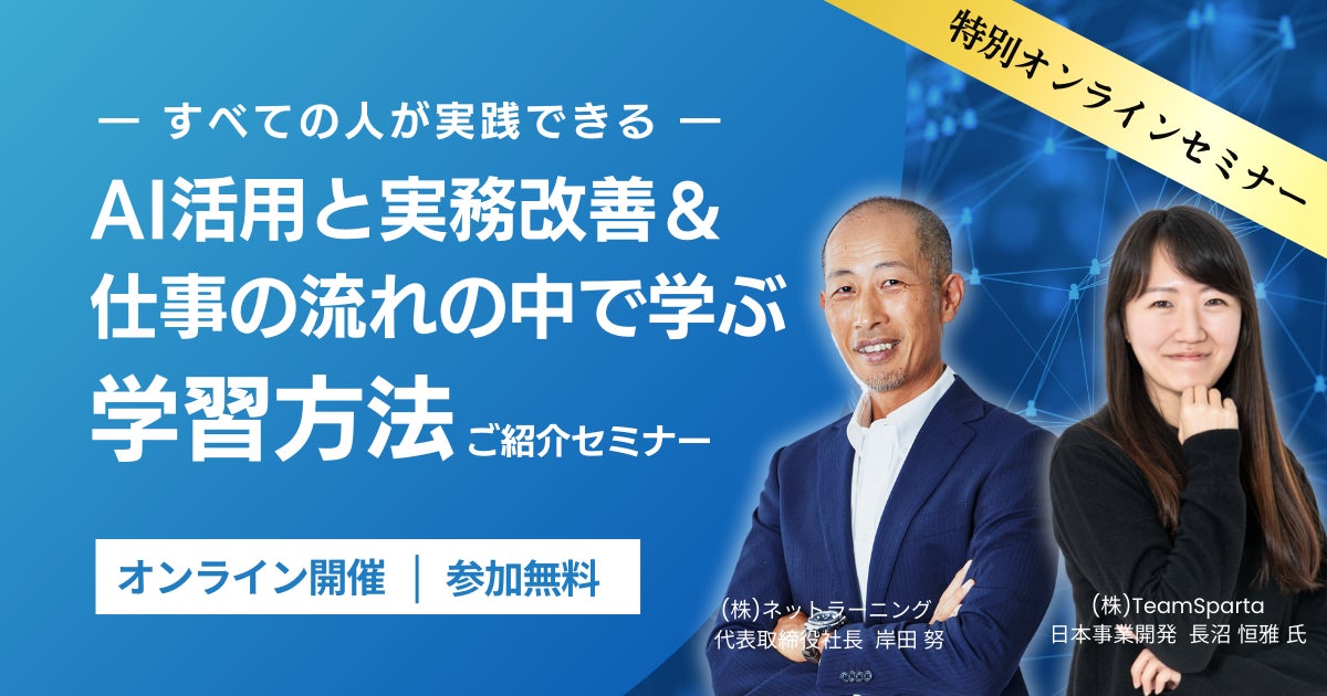 【特別無料オンラインセミナー「すべての人が実践できるAI活用と実務改善&仕事の流れの中で学ぶ学習方法 ご紹介セミナー」】