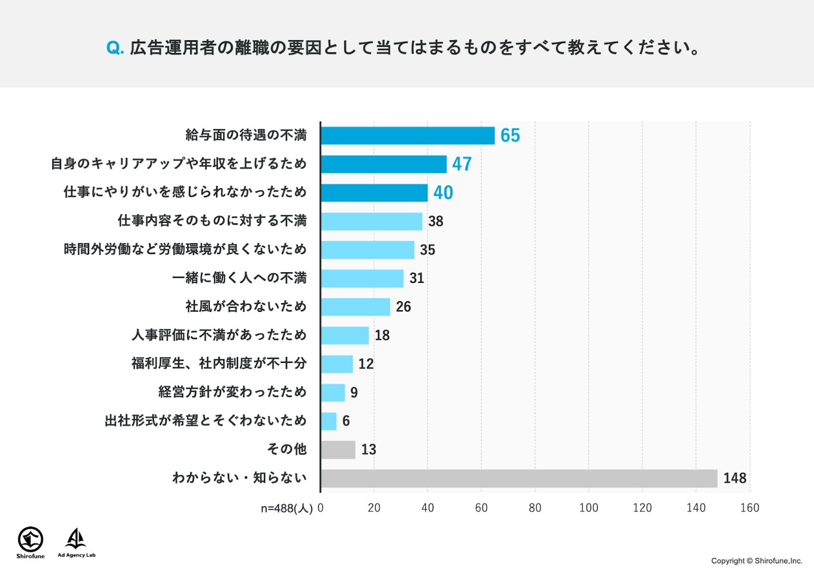 広告担当者の離職のきっかけとなる要因、1位は「給与面の待遇の不満」