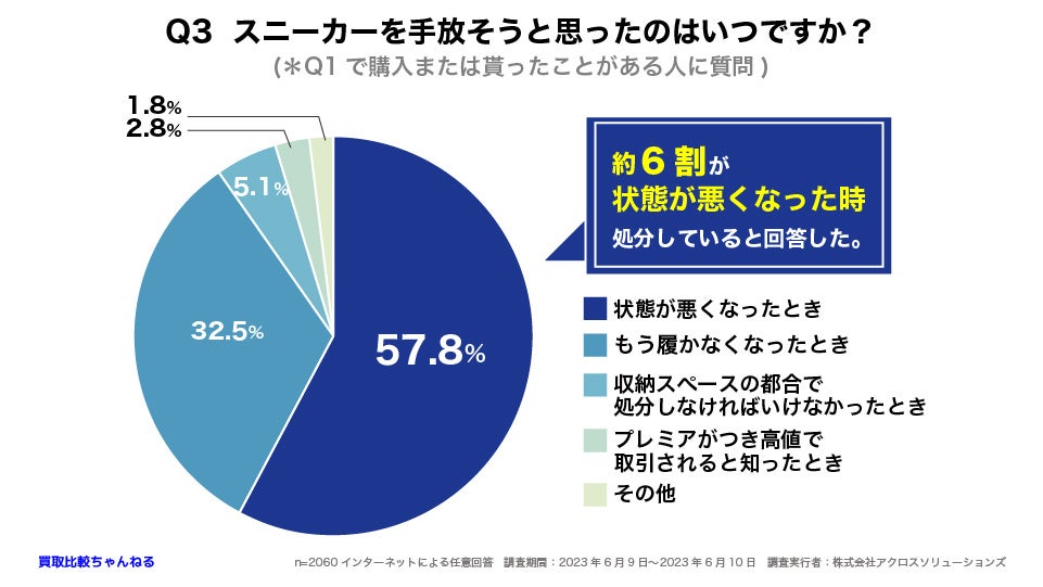 Q3 57.8%の人が「状態が悪くなったとき」にスニーカーを手放すことが分かりました。