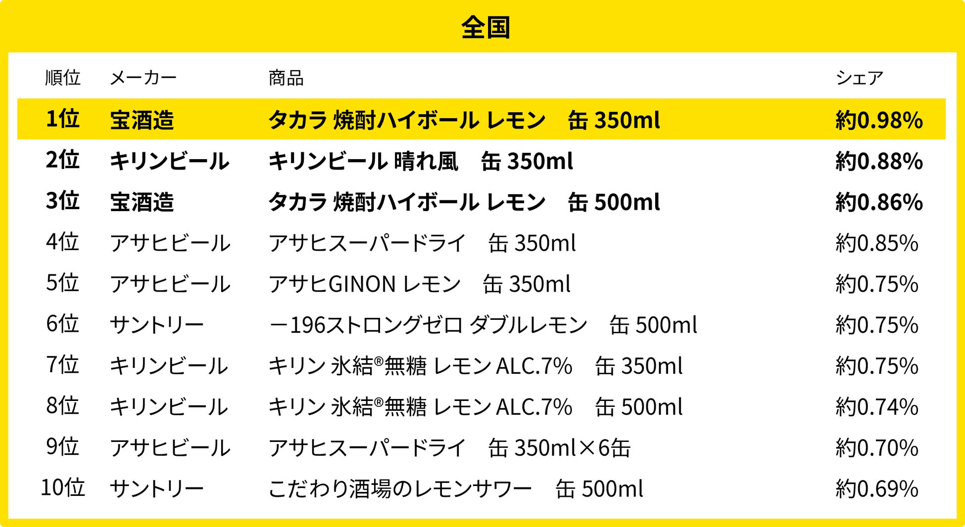 全国1位は「焼酎ベースの炭酸割り」、地方1位には今年発売されたアルコール飲料も!