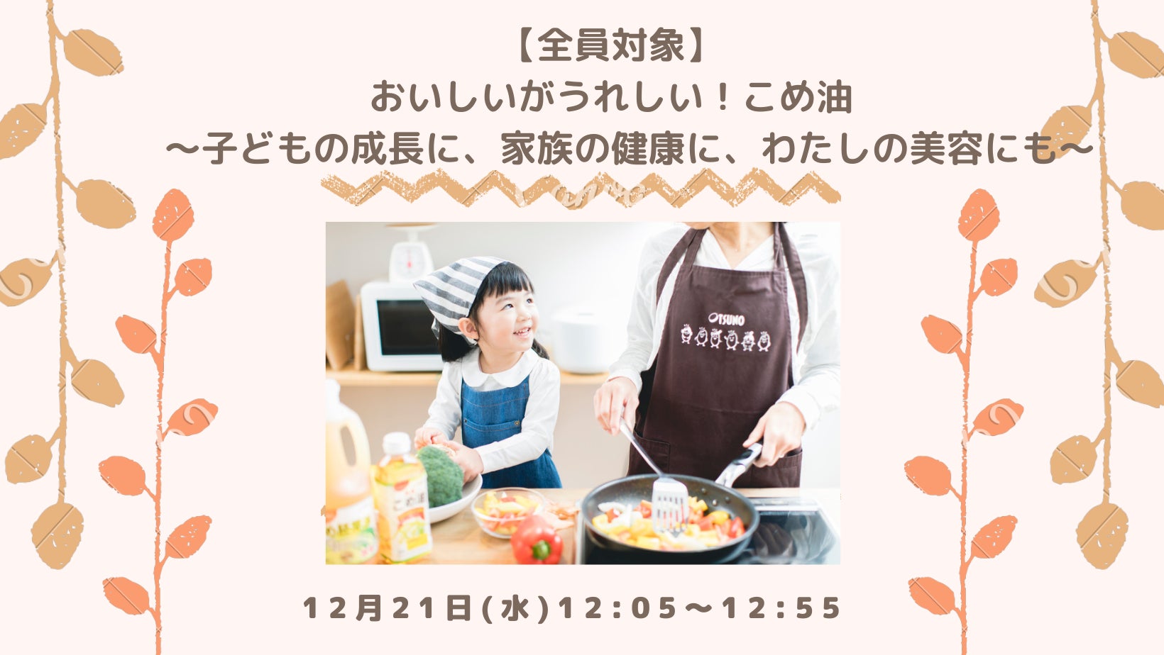「お米の油は、つの食品。」の築野食品工業株式会社(本社:和歌山県伊都郡かつらぎ町 代表取締役社長 築野富美https://www.tsuno.co.jp/)は、 育休コミュニティ「MIRAIS」(https://www.ikukyu-mirais.com/)にて、「おいしいがうれしい!こめ油セミナー ~子どもの成長に、家族の健康に、わたしの美容に~」のテーマのもと、当社のこめ油や米ぬか由来商品について紹介いたしました。