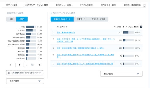 ログイン率、閲覧状況及び資料DL状況など、誰がどんな補助金に興味を持って提案を進めているのかをデータで可視化