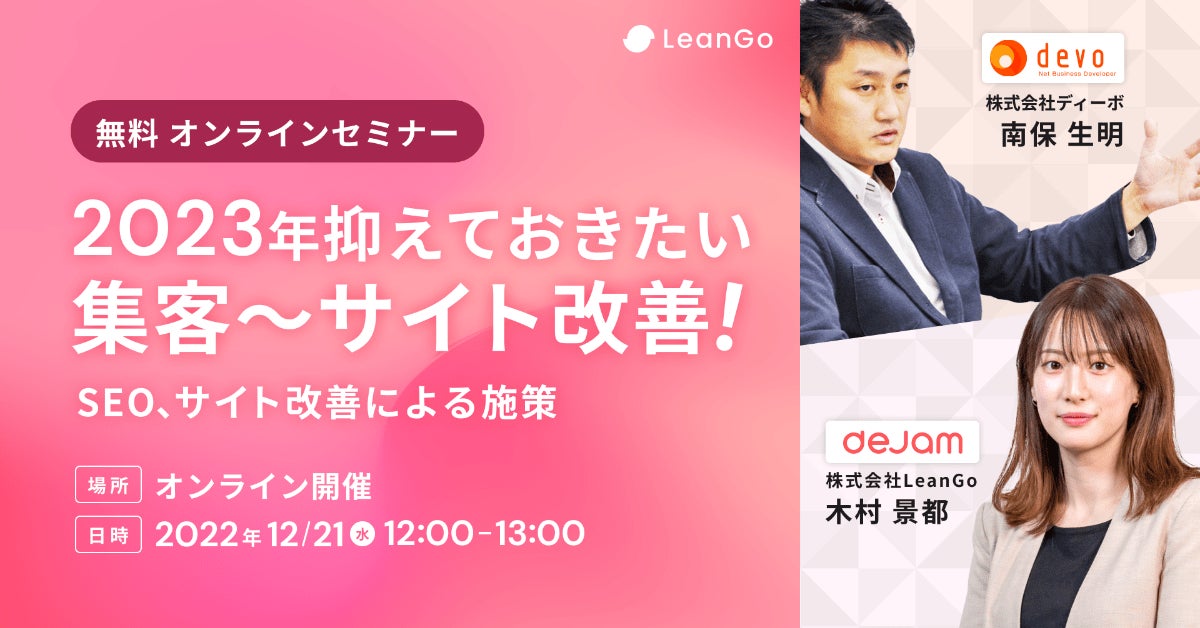 【Webマーケター向けの無料ウェビナー】2023年先取り!今日から実践できるSEO対策〜サイト改善 | LeanGoがディーボと共催