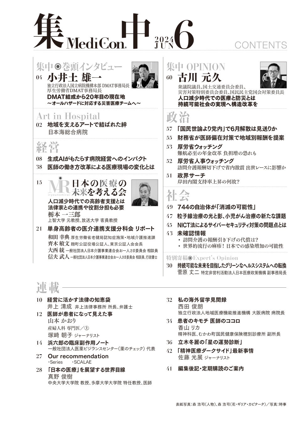 医療情報誌 月刊『集中』2024年6月号 巻頭インタビュー 小井土雄一 国立病院機構本部 DMAT事務局長/集中OPINION 古川 元久 衆議院議員 他
