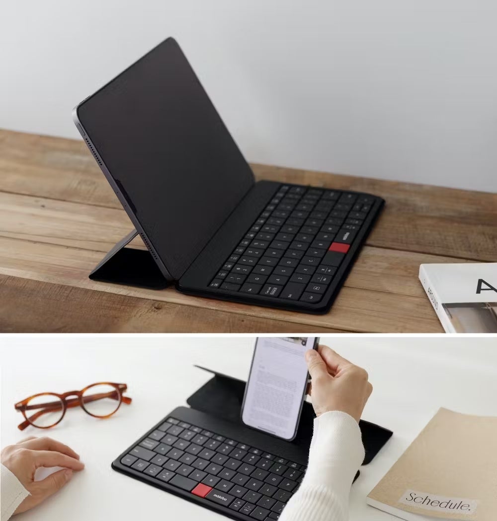 iPadを買うと次々と必要になる各種アクセサリー。スタンドやマウス、キーボードケースを別々に買う必要は一切ありません準備するのは「mokibo Fusion Keyboard」ひとつでOK。簡単かつ便利に、作業環境をセット。