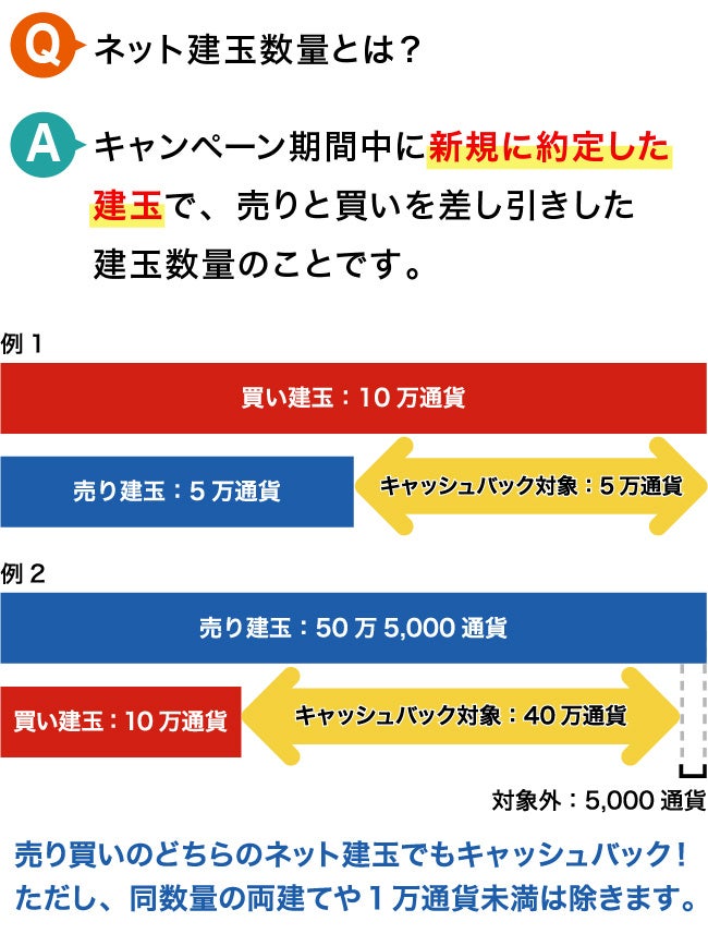 ・キャッシュバック額は、毎営業日の取引終了時点のネット建玉数量に応じて算出します。