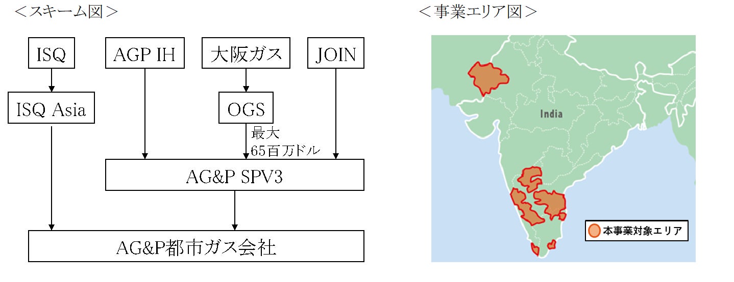 大阪ガス株式会社(社長:藤原 正隆)は、子会社であるOSAKA GAS SINGAPORE PTE. LTD.(社長:平林 幹由、以下「OGS」)を通じて、株式会社海外交通・都市開発事業支援機構(社長:武貞 達彦、以下「JOIN」)とともにAG&P CGD HoldCo SPV3(Singapore)Pte. Ltd.(以下「AG&P SPV3」)に出資することで、AG&P LNG CGD HoldCo Pte. Ltd.(以下「AG&P都市ガス会社」)が行うインドにおける都市ガス事業に参画しました。本件は、日本企業として初めてのインド都市ガス事業への参画になります。