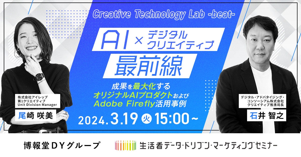【“生活者データ・ドリブン”マーケティングセミナー主催】AI×デジタルクリエイティブ最前線~成果を最大化するオリジナルAIプロダクトおよびAdobe Firefly活用事例~