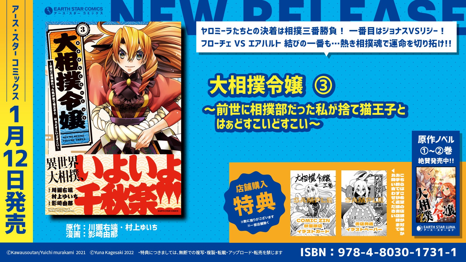 アース・スタールナで刊行中のノベルが原作で、現在コミック アース・スターで公開中の人気作品『大相撲令嬢 ~前世に相撲部だった私が捨て猫王子と はぁどすこいどすこい~』第3巻を1月12日(木)に発売いたします。
