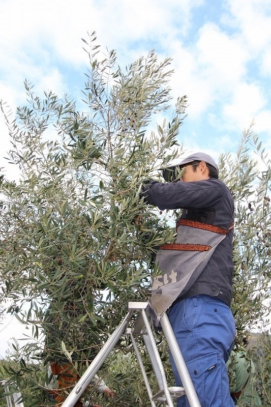 小豆島のオリーブ農家・井上誠耕園は、自然の恵みを実感できる商品づくりを目指しています。そのためには、本当に良いオリーブ果実を育てるところから始まります。オリーブの実は傷付くとそこから酸化が始まるため、手間がかかっても実を傷つけない手摘みによる収穫が一番です。当園には約5,000本のオリーブの木が植えられ、その全てが手摘みで収穫されています。