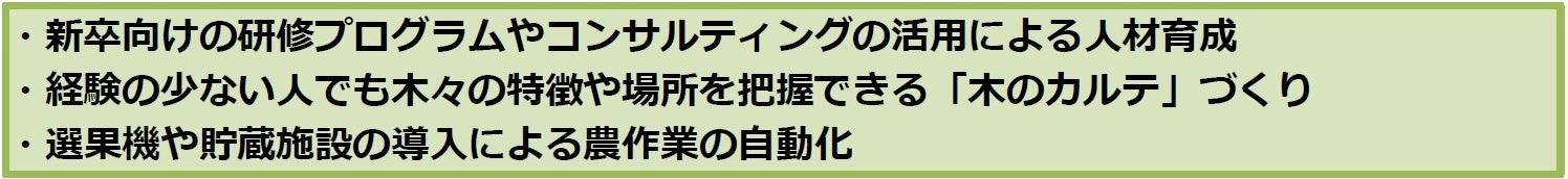 人口約2万8000人の小豆島は急速な高齢化と人口減少の影響もあり、農業の跡継ぎがおらず年々耕作放棄地が増え続けています。井上誠耕園では「農業で以て地域を豊かに」を理念に、小豆島の先人たちが作り上げた土地を新しく農作で稼げる農地に再生する取り組みを続けています。毎年多くの新卒や経験者の採用、さらに、オリーブ収穫期の10月~12月には季節限定のアルバイトの方を雇っています。まさに全国から様々な人材が小豆島に集い、人の手を中心としたオリーブづくりを行っているのです。しかし、農業未経験者を多く含む様々な人員に、従来の農業のやり方であった「経験と勘」だけでは指導することが難しくなりつつあります。そういったことを含め私たちは、農業をデータ化し技術継承を行う新しい農業を目指しています。