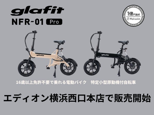 16歳以上であれば免許不要で乗ることができる特定小型原動機付自転車(以下、特定原付)は、2023年7月の施行開始から1年が経過し、電動モビリティへの関心が高まる中で、パーソナルな移動手段の選択肢として認知が広がりつつあります。glafitの 電動サイクル NFR-01Proは、Makuakeのクラウドファンディングで1億円以上の応援購入をいただき、移動の社会課題への、1つの選択肢としてのニーズを強く感じております。9月より一般販売を開始しており、今回地域に密着した家電量販店であるエディオンでの取り扱いで、横浜の多くの方に店頭でご覧いただけるようになります。