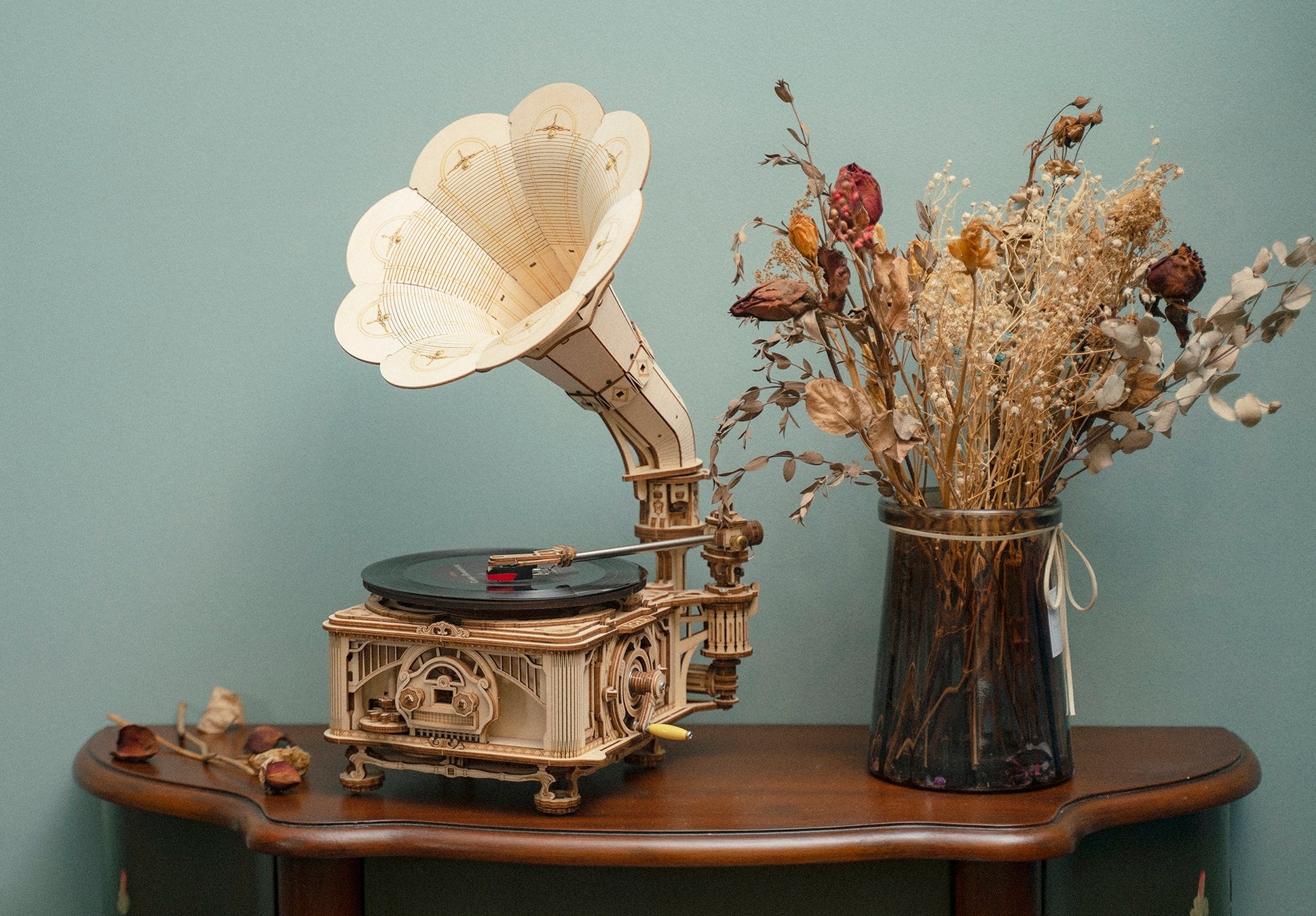 シリーズ史上初、本物のレコードが自動再生できるウッドパズル!DIYクラフトキットつくるんです®より「奏でる蓄音機」が新登場