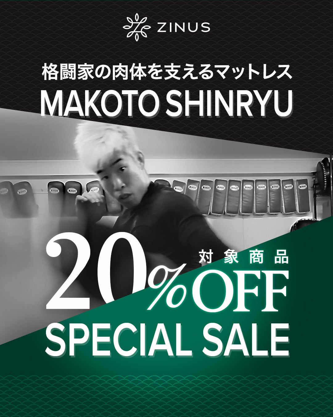 神龍誠選手の強靭な肉体を良質な睡眠により整え、その強さを支えるZINUSのマットレスやベッドフレーム、枕をSALE価格で提供することで、忙しく働く現代人の健康をZINUSが支えていきます。