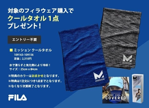 対象のFILAウェアを購入してすると、クールタオルがもらえるキャンペーンとなります。